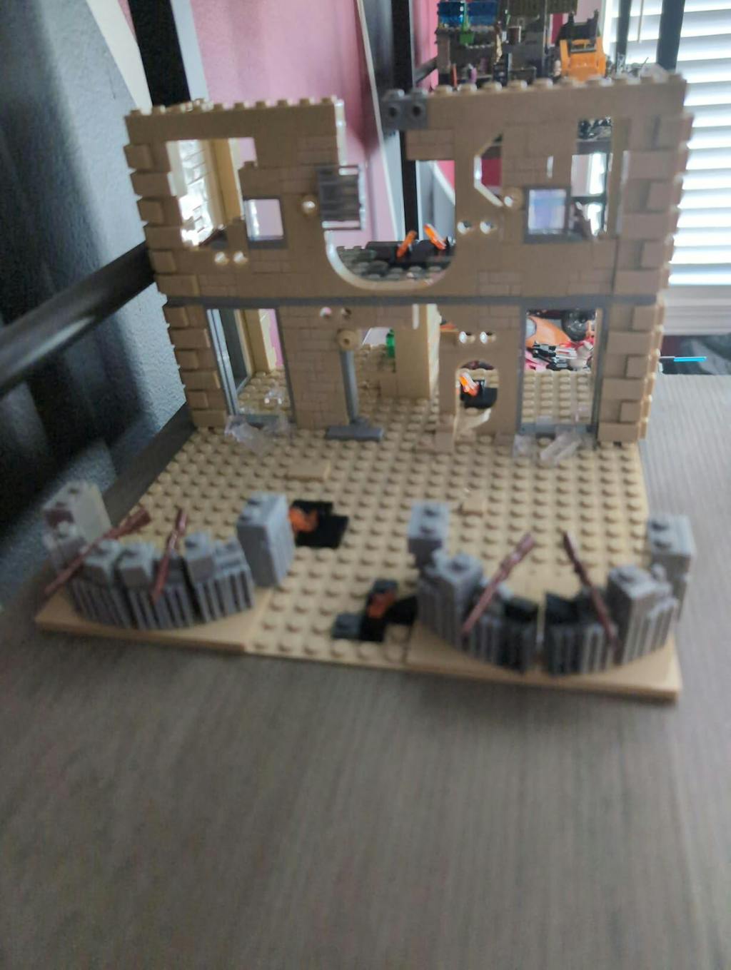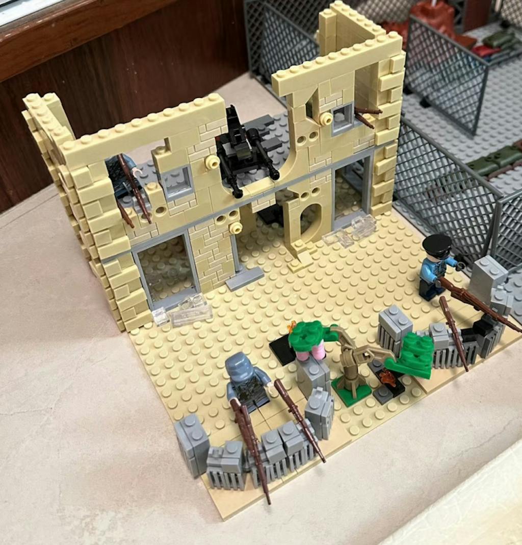 . Inspired by some of the houses that were destroyed in the war, it has features that you can't even imagine. For example, Broken buildings, shards of glass, still-burning flames, remnants of fortresses, weapons, walls that are all cracked, buildings that are only half left, all kinds of details that show how much this house suffered during the war.